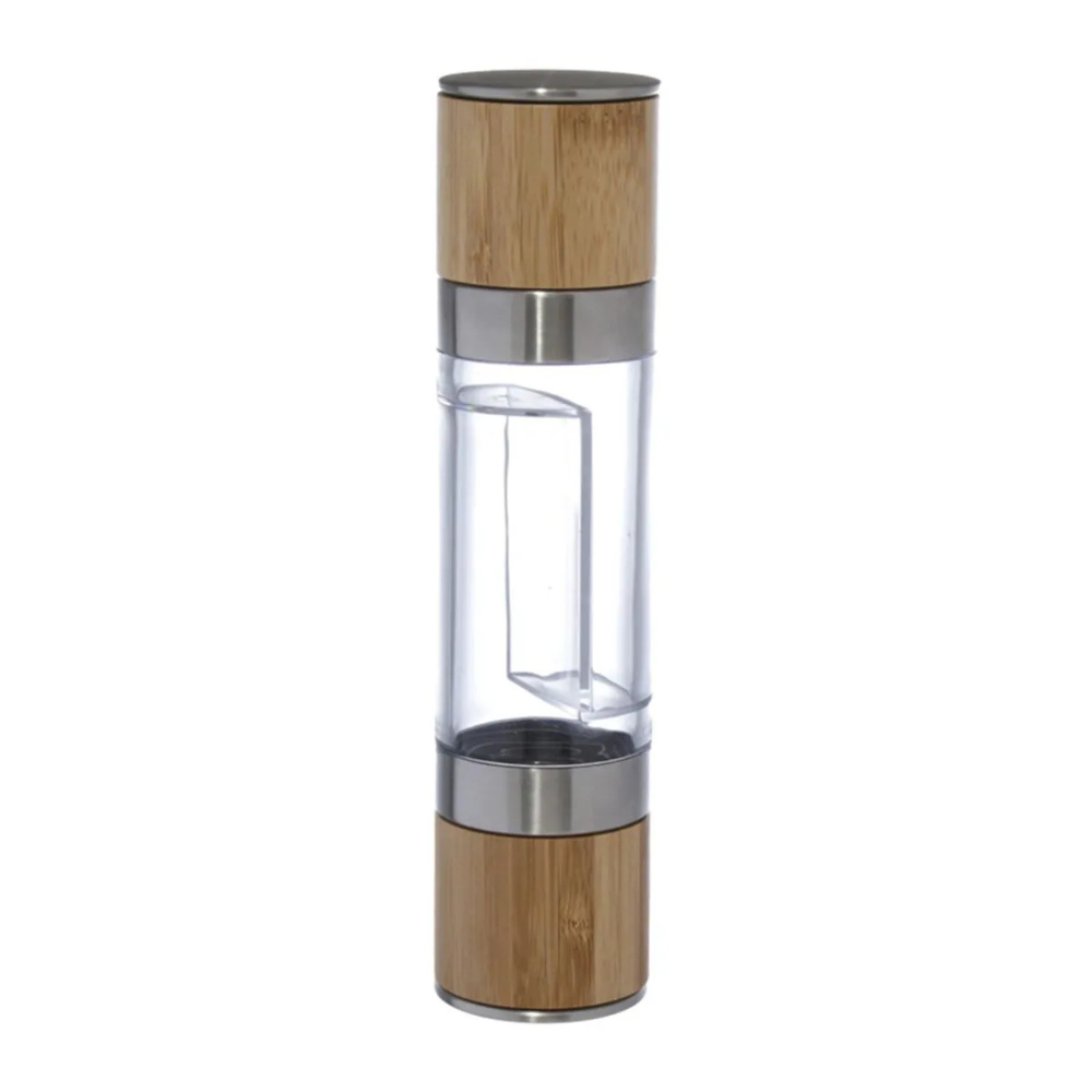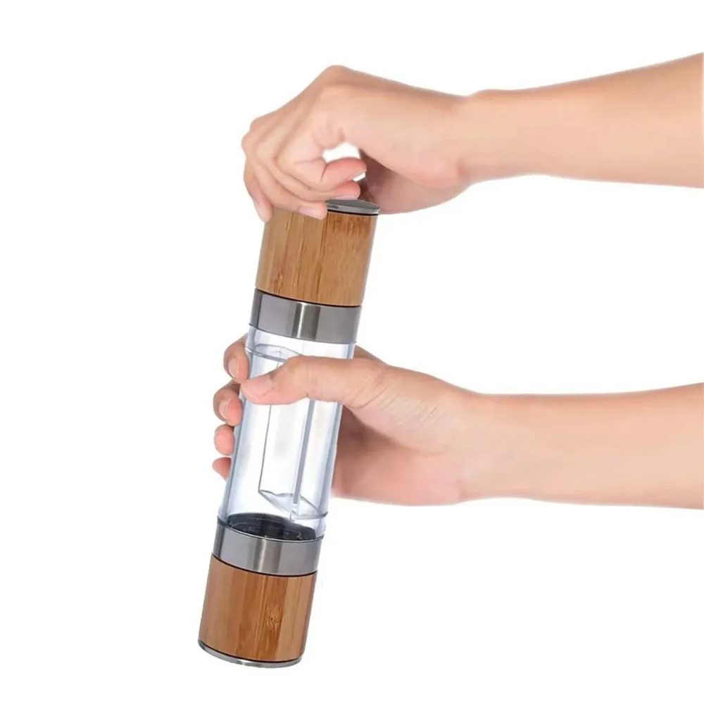 Perfeito para moer temperos com praticidade, mantendo o sabor e o aroma frescos em suas receitas. Seu corpo em bambu natural proporciona charme rústico, enquanto o compartimento transparente facilita a visualização do conteúdo.