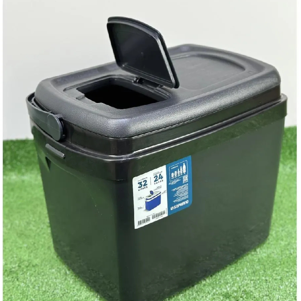 Conta com alças laterais embutidas que garantem firmeza no manuseio, além de alça de mão articulável e retrátil para maior comodidade. A tampa com trava proporciona vedação eficiente, mantendo a eficiência térmica por mais tempo.