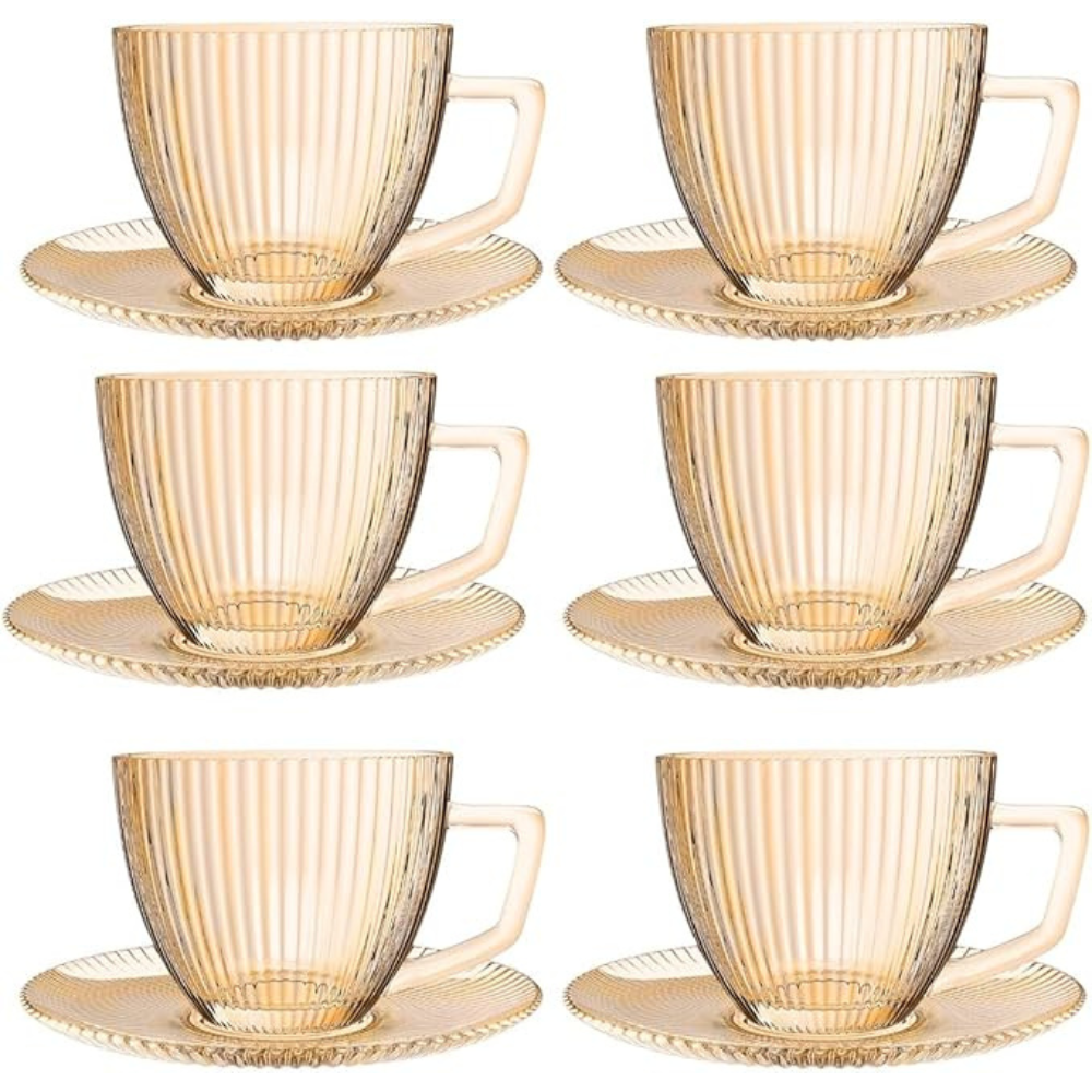 Este conjunto com 6 xícaras e 6 pires em vidro âmbar é ideal para servir café com charme e requinte. Além de belíssimo, é funcional e resistente, com acabamento delicado que transforma qualquer pausa para o café em uma experiência especial.